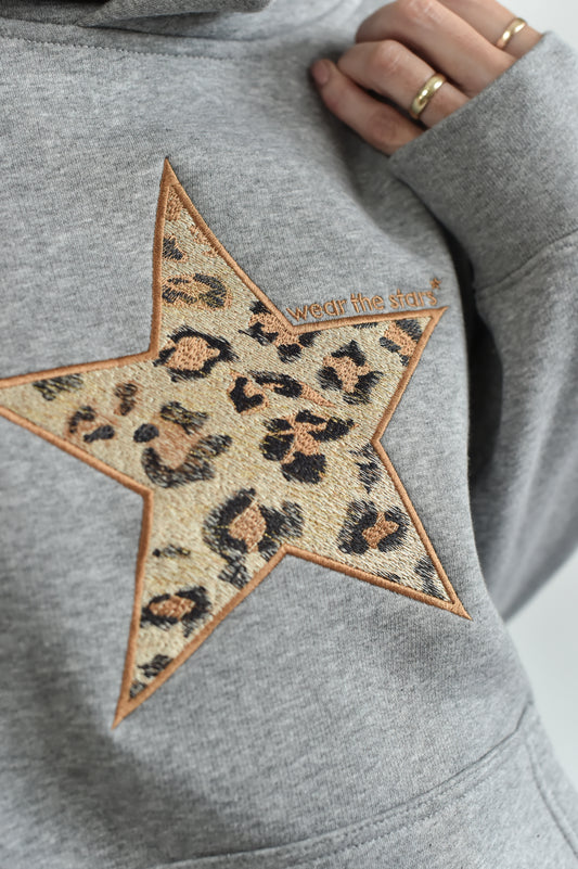 NEW STYLE Meet our Grey Hoodie with Leopard Embroidered Star