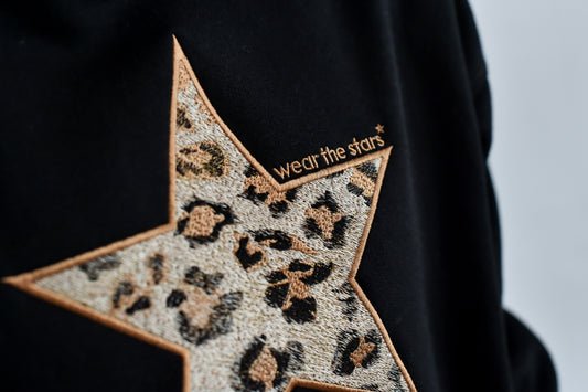 NEW STYLE Meet Our Black Sweatshirt with Leopard Embroidered Star